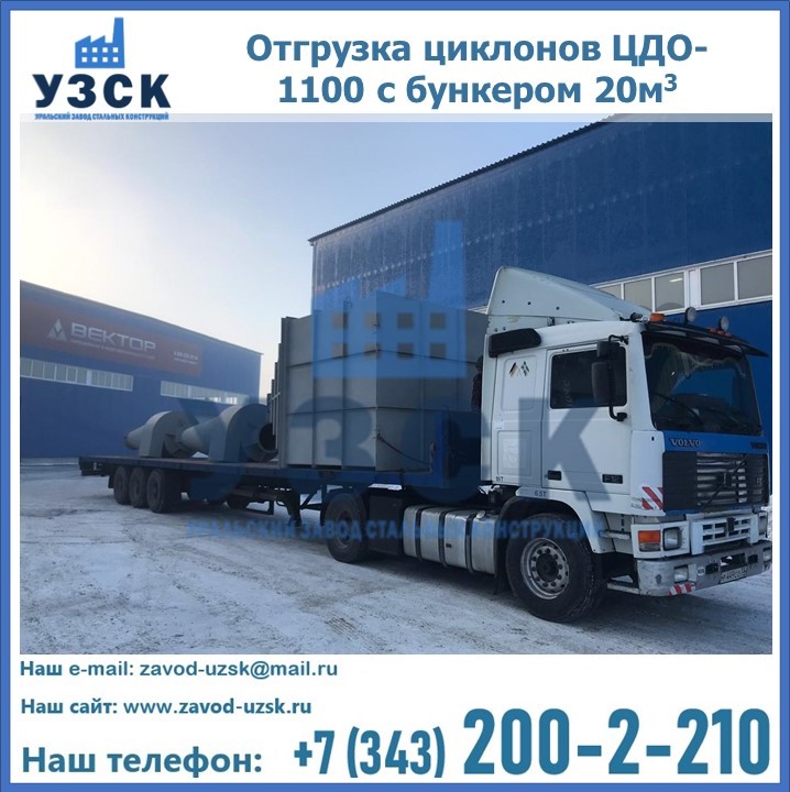 Циклоны ЦДО-1100 с бункером на 20 кубов были отгружены в декабре 2018 года в г. Новосибирск Саранск.
