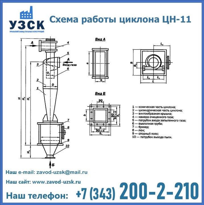 При этом ощутимой разницы в цене между универсальным и узконаправленным, подобранным в соответствии с конкретными техническими требованиями циклоном, нет. Стоимость воздухоочистительного оборудования типа циклон обусловлена маркой и толщиной стали, из которого он изготовлен, сложностью и специфичностью конструкции, наличием дополнительного оснащения (бункер, улитка и другие). При необходимости, на заводе УЗСК в Саранске будет изготовлен циклон по индивидуальным техническим чертежам заказчика.
