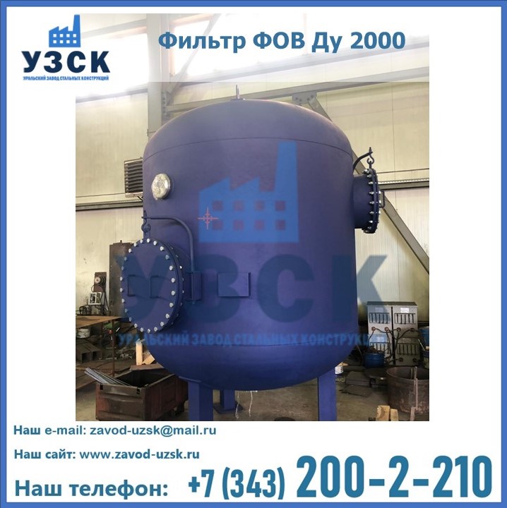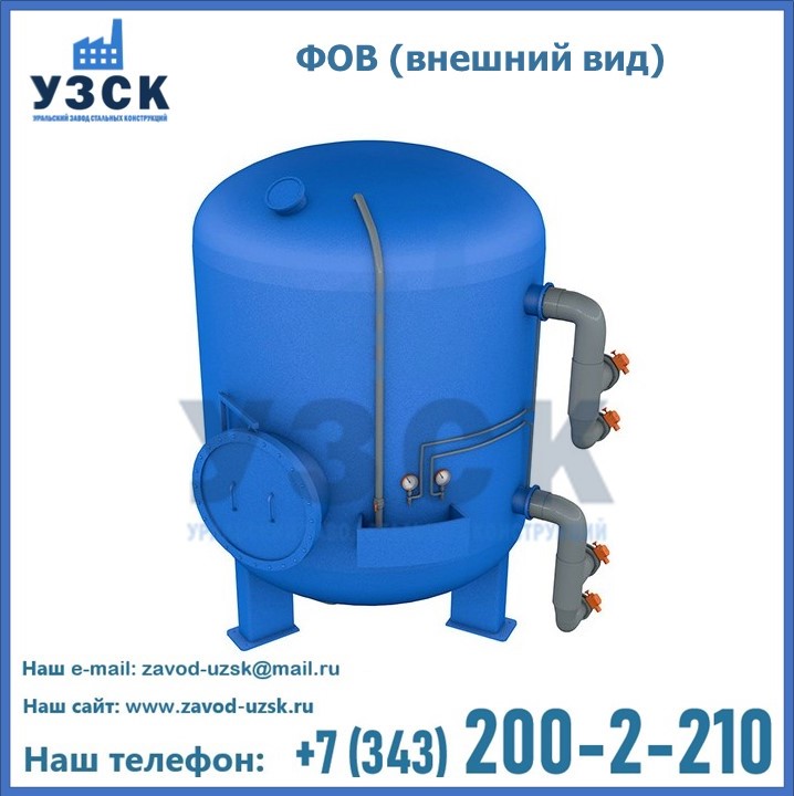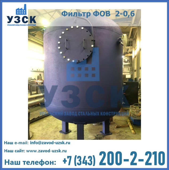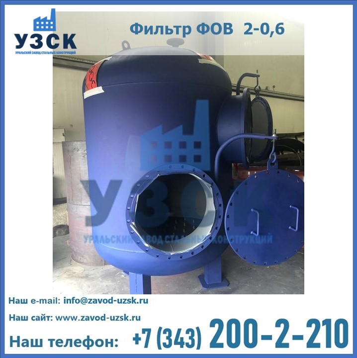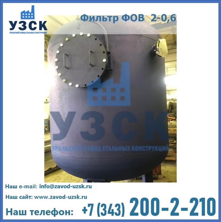 Удаление взвешенных веществ различного уровня дисперсности из рабочих жидкостей эффективно проводит фильтр осветлительный типа ФОВ (скорый или механический) — вертикально-цилиндрической формы установка, разработанная для систем водоподготовки различного класса. Оборудование представляет собой однокамерный агрегат для очистки воды рекомендованный для применения на станциях очистки стоков, в коммунальных котельных, на ТЭЦ, в промышленных отопительных системах и пр. Заказать производство ФОВ фильтров предлагает наш Уральский завод стальных конструкций в Саранске. У нас можно купить фильтрационное оборудование различного класса и типа, в том числе фильтры ФОВ из нержавеющей стали.