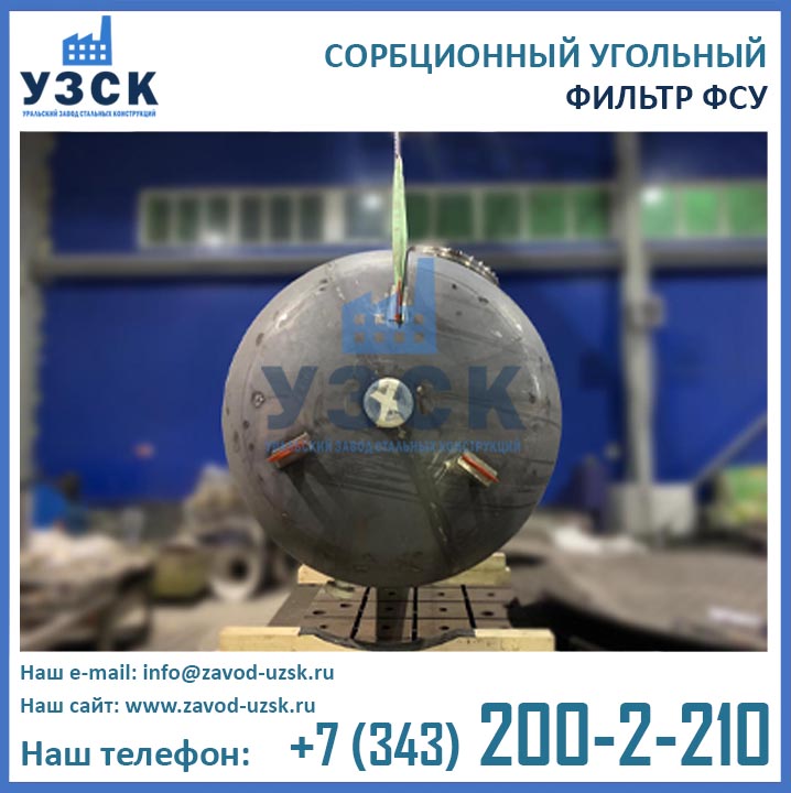 Качественную работу отопительных и промышленных котельных, линий по очистке конденсата и природных вод, электростанций обеспечивает фильтр сорбционный угольный типа ФСУ — вертикальный сосуд с одной камерой цилиндрической формы. Основное назначение оборудования состоит в глубокой очистке возвращаемого с производства конденсата от запахов, органических загрязнений и привкусов. Использование ФСУ в системах водоподготовки гарантирует очищение субстанции от масел, органических примесей, остатков нефтепродуктов до нормального значения — 0.52-1.0 мг/л. Купить в Саранске угольные фильтры предлагает наш Уральский завод стальных конструкций. Мы выполняем производство ФСУ под нужды предприятия, возможно изготовление сорбционных фильтров ФСУ из нержавеющей стали включая корпус и внутренние устройства.
