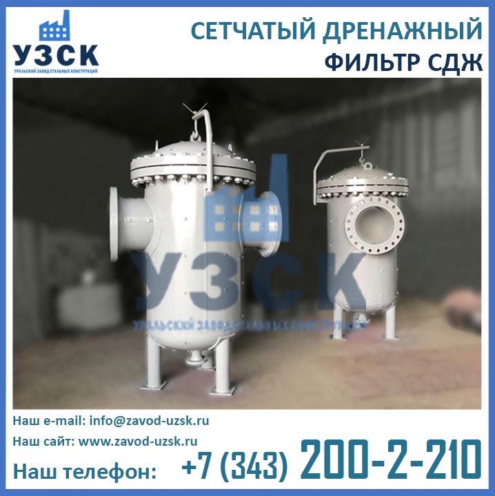 На формирование цены дренажного фильтра влияют следующие факторы: материальное исполнение, конструктивное исполнение, стоимость сырья в момент изготовления, комплектация, необходимость доставки в другой населенный пункт, срочность выполнения работ по изготовлению, прочие предпочтения заказчика. Уральский завод стальных конструкций изготавливает фильтры СДЖ-700 любого типового исполнения, а также нестандартные фильтры СДЖ 700 мм по чертежам заказчика или техническому заданию. Дополнительно к фильтрам СДЖ у нас Вы можете заказать сменные фильтрующие элементы любой тонкости фильтрации, ответные фланцы, прокладки и крепеж. По запросу изготавливаем также фильтры СДЖ-К-700 с концевым затвором. Для того чтобы узнать какова цена на фильтр СДЖ Ду700 в Саранске с необходимыми Вам характеристиками, отправьте запрос в отдел продаж завода УЗСК по координатам, указанным в разделе «Контакты».