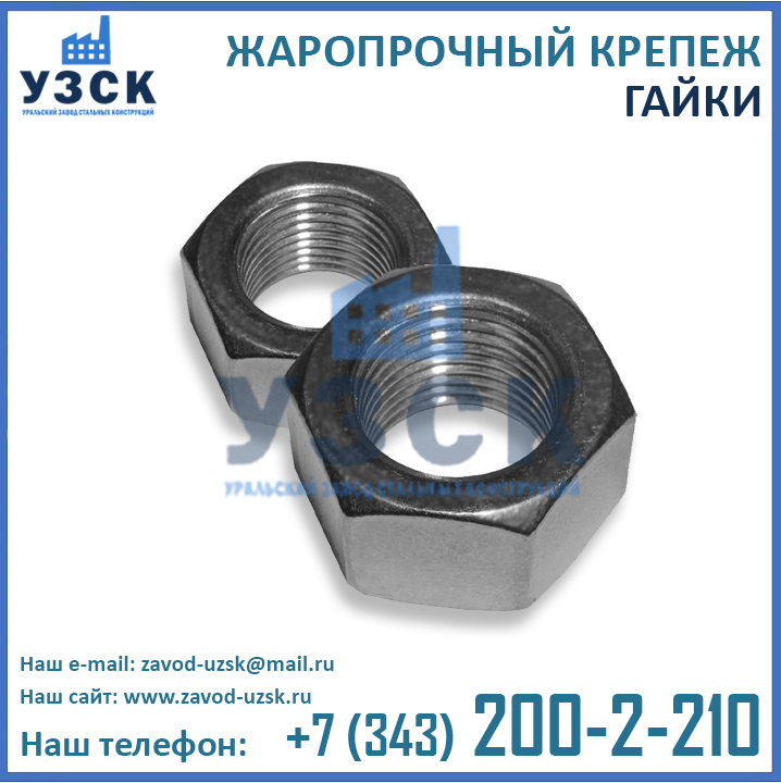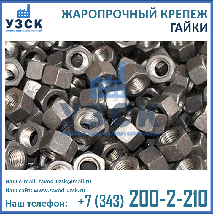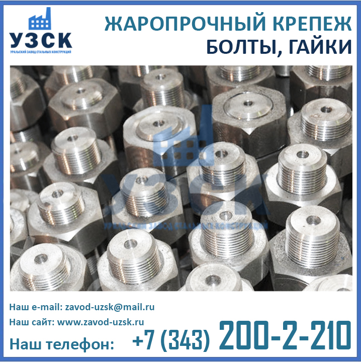 Являясь непосредственным производителем теплостойких метизов, Уральский Завод Стальных Конструкций может изготовить крепеж для высоких температур любого исполнения, как типового, так и нестандартного (по индивидуальным размерам и характеристикам заказчика). У нас Вы можете заказать оцинкованные болты, шпильки и гайки, обладающие жаропрочными свойствами, а также хромированные метизы.